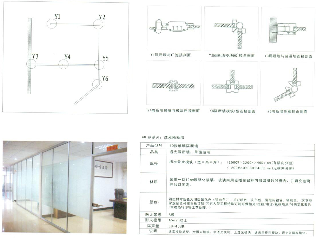 40款單玻高隔斷,隔墻厚度為40mm,它也是種經(jīng)濟(jì)款,價格相對實(shí)惠,適合于預(yù)算低,實(shí)用為主又有一定要求的客戶群。