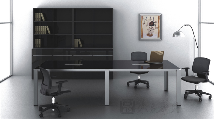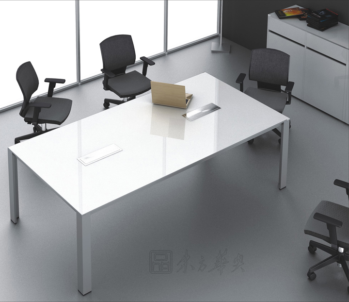 Meeting會(huì)議桌依然保持著Rising的簡(jiǎn)約風(fēng)格。桌面同樣采用鏡面高光UV漆或松木紋飾面和細(xì)薄的金屬封邊,桌腳設(shè)計(jì)為“L”形和“T”形的鋁合金柱腳,簡(jiǎn)潔明快、輕盈大方,讓整個(gè)會(huì)議空間豁然開朗。