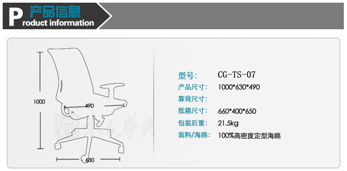 ※溫馨提示: 網布職員椅 CG-TS-07的圖片顏色已盡量接近實物,但因為拍攝時的光線、顯示器的分辨率不同等因素,網布職員椅 CG-TS-07會存在一定的色差,請您諒解。
